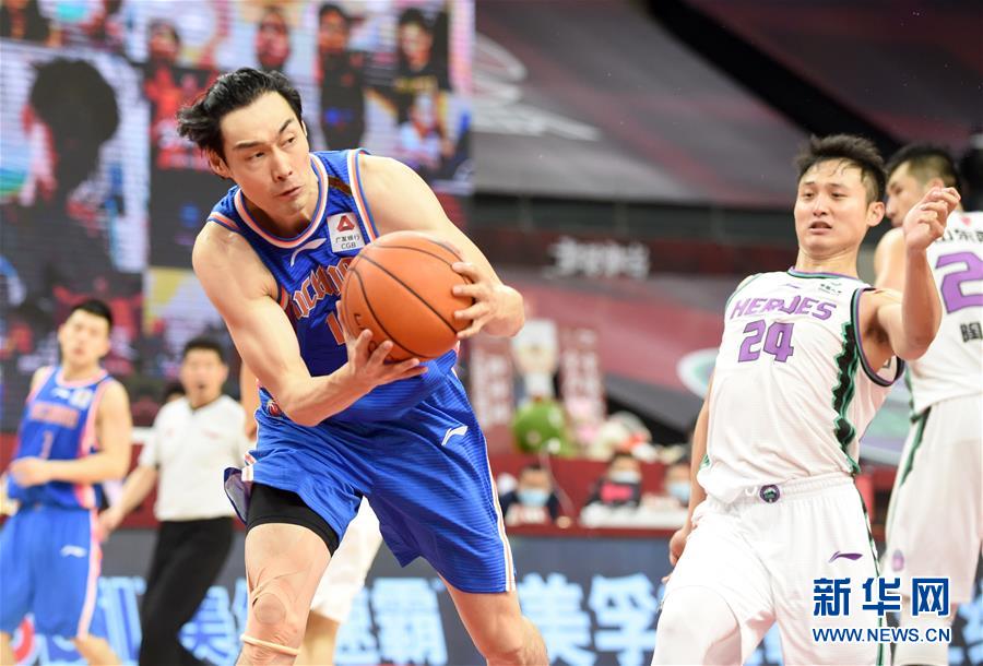 6月29日,四川五粮金樽队球员孟达(前左)在比赛中伺机传球。 当日,在2019-2020赛季中国男子篮球职业联赛(CBA)复赛第一阶段比赛中,山东西王队以95比77战四川五粮金樽队。 新华社记者 卢汉欣 摄