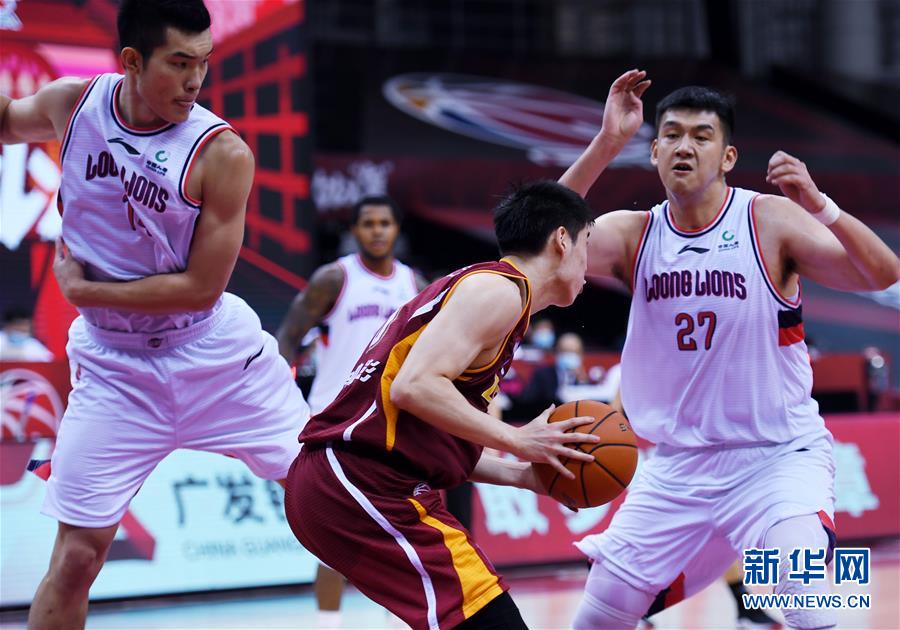 6月29日,浙江稠州银行队球员程帅澎(中)在比赛中持球进攻。 当日,在青岛国信体育馆举行的2019-2020赛季中国男子篮球职业联赛(CBA)复赛第一阶段比赛中,浙江稠州银行队以111比107战胜时代中国广州队。 新华社记者李紫恒摄