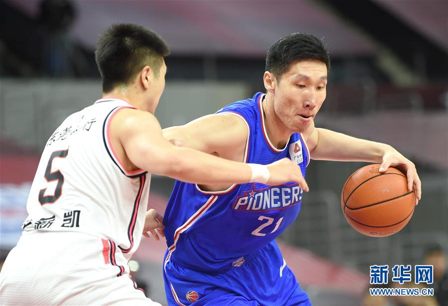 6月29日,天津先行者队球员刘伟(右)在比赛中带球突破。 当日,在2019-2020赛季中国男子篮球职业联赛(CBA)复赛第一阶段比赛中,广东东莞银行队以126比98战胜天津先行者队。 新华社记者卢汉欣摄