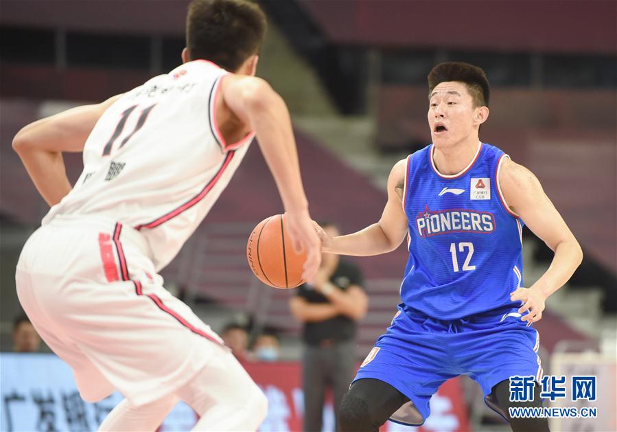 6月29日,天津先行者队球员刘帅(右)在比赛中带球突破。 当日,在2019-2020赛季中国男子篮球职业联赛(CBA)复赛第一阶段比赛中,广东东莞银行队以126比98战胜天津先行者队。 新华社记者卢汉欣摄