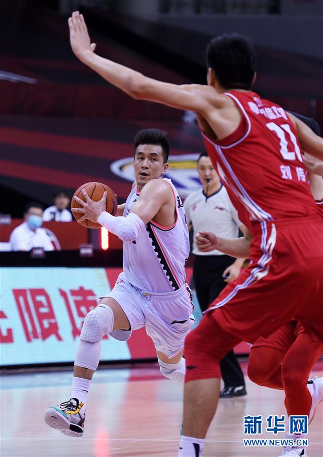 6月29日,辽宁本钢队球员郭艾伦(左)在比赛中带球突破。 当日,在山东青岛举行的2019-2020赛季中国男子篮球职业联赛(CBA)复赛第一阶段比赛中,辽宁本钢队以109比81战胜青岛国信双星队。 新华社记者李紫恒摄