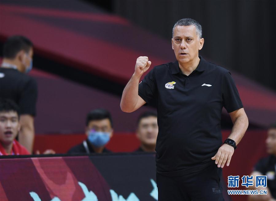 6月29日,辽宁本钢队临时主教练马丁内斯在场边鼓励队员。 当日,在山东青岛举行的2019-2020赛季中国男子篮球职业联赛(CBA)复赛第一阶段比赛中,辽宁本钢队以109比81战胜青岛国信双星队。 新华社记者李紫恒摄