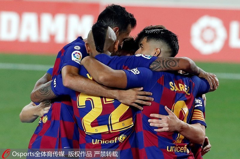 巴萨队员庆祝进球