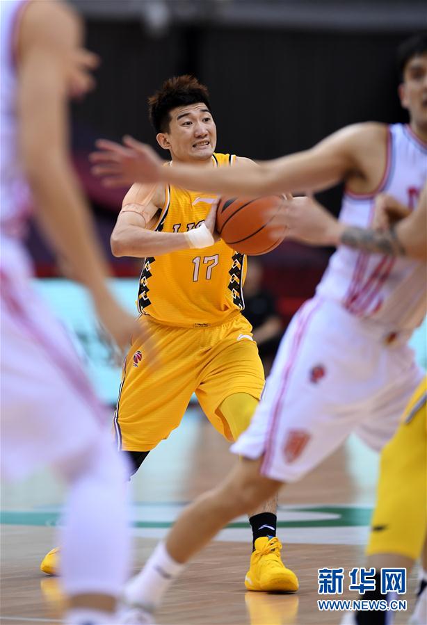7月1日,浙江广厦控股队球员孙铭徽(中)在比赛中传球。 当日,在山东青岛举行的2019-2020赛季中国男子篮球职业联赛(CBA)复赛第一阶段比赛中,浙江广厦控股队以100比88战胜青岛国信双星队。 新华社记者 李紫恒 摄