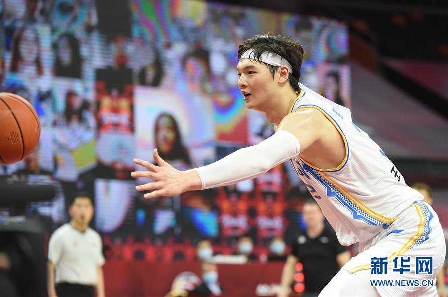 7月1日,福建豹发力队球员王哲林在比赛中抢球。 当日,在广东东莞举行的2019-2020赛季中国男子篮球职业联赛(CBA)复赛第一阶段比赛中,福建豹发力队以107比96战胜苏州肯帝亚队。 新华社记者 卢汉欣 摄