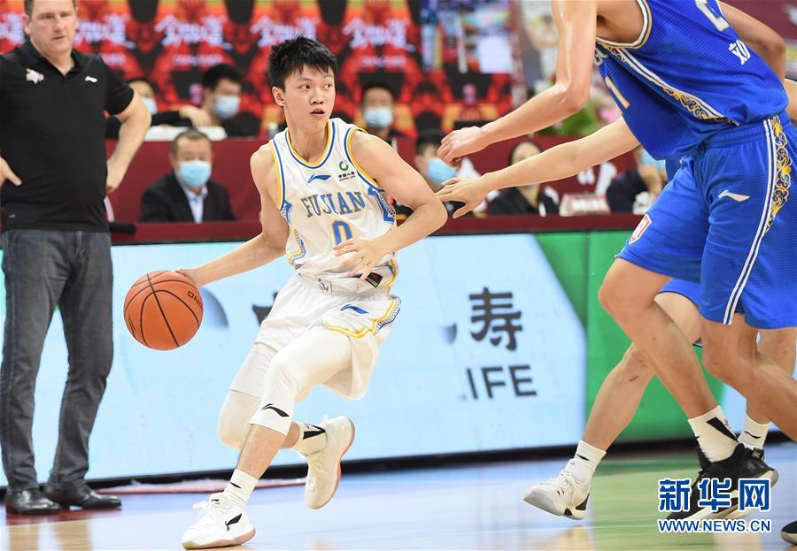 7月1日,福建豹发力队球员徐铭智(中)在比赛中带球突破。 当日,在广东东莞举行的2019-2020赛季中国男子篮球职业联赛(CBA)复赛第一阶段比赛中,福建豹发力队以107比96战胜苏州肯帝亚队。 新华社记者 卢汉欣 摄