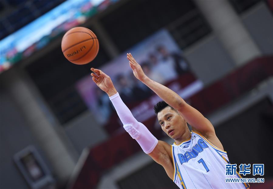 7月1日,北京首钢队球员林书豪在比赛中投篮。 当日,在山东青岛举行的2019-2020赛季中国男子篮球职业联赛(CBA)复赛第一阶段比赛中,北京首钢以96比72战胜时代中国广州队。 新华社记者李紫恒摄