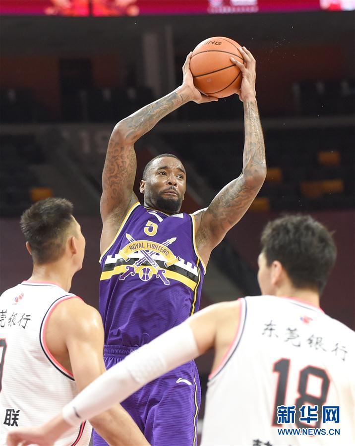 7月1日,北京控股队球员摩尔特里(中)在比赛中投篮。 当日,在广东东莞举行的2019-2020赛季中国男子篮球职业联赛(CBA)复赛第一阶段比赛中,广东东莞银行队以136比91战胜北京控股队。 新华社记者 卢汉欣 摄