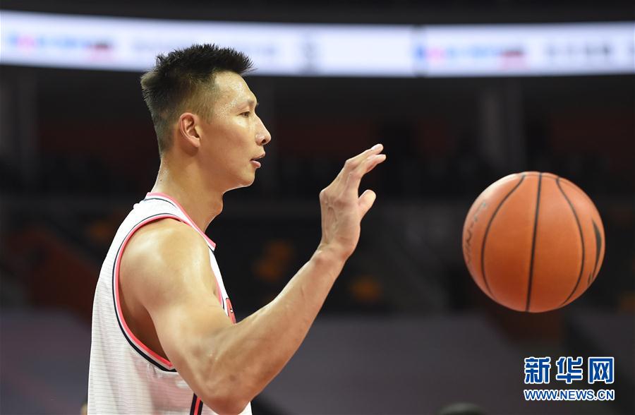 7月1日,广东东莞银行队球员易建联在比赛中。 当日,在广东东莞举行的2019-2020赛季中国男子篮球职业联赛(CBA)复赛第一阶段比赛中,广东东莞银行队以136比91战胜北京控股队。 新华社记者 卢汉欣 摄