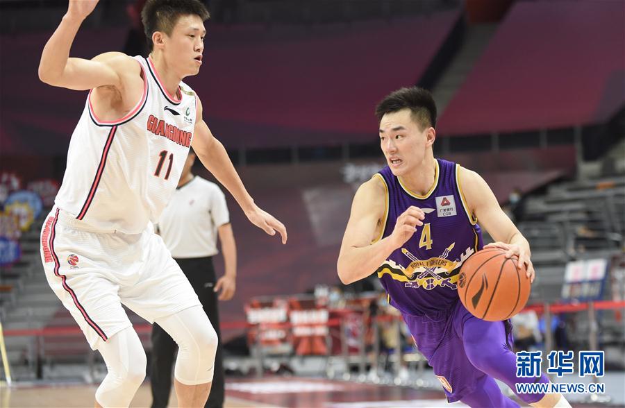 7月1日,北京控股队球员孟博龙(右)在比赛中带球突破。 当日,在广东东莞举行的2019-2020赛季中国男子篮球职业联赛(CBA)复赛第一阶段比赛中,广东东莞银行队以136比91战胜北京控股队。 新华社记者 卢汉欣 摄