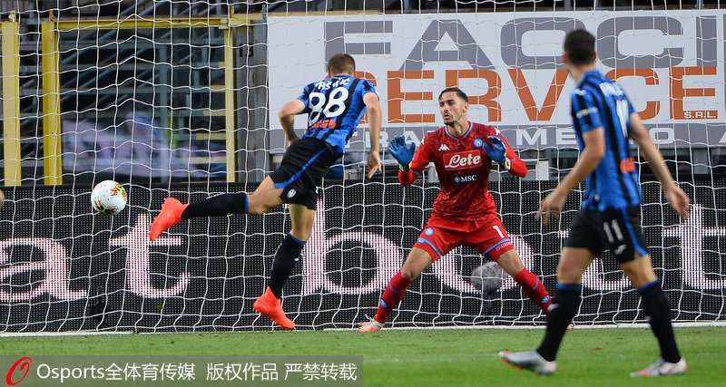 第47分钟,那不勒斯队后场失误被抢断,亚特兰大队戈麦斯禁区右侧传中,无人盯防的帕萨利奇轻松甩头攻门顶入死角,亚特兰大1-0领先那不勒斯。