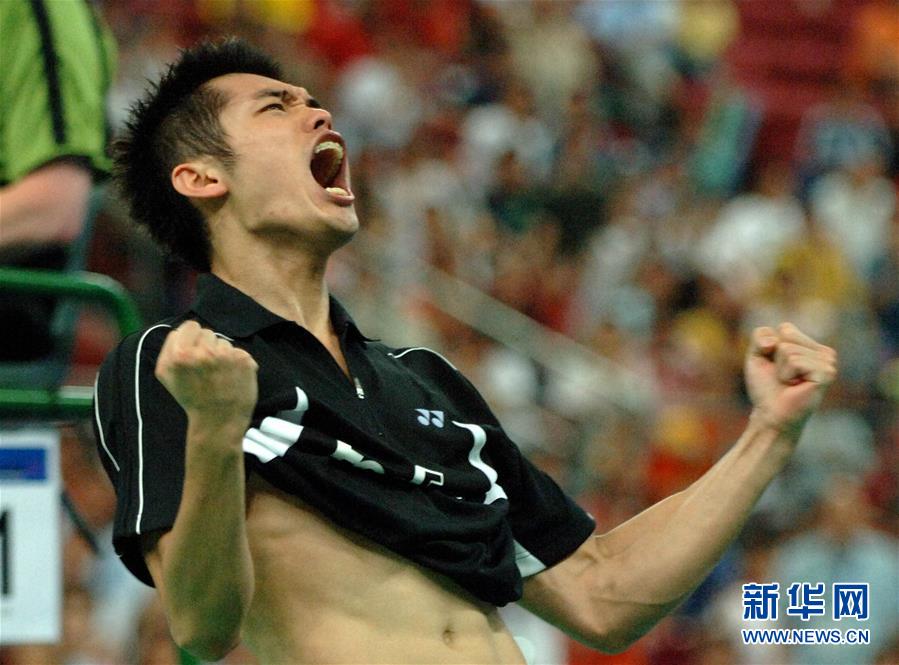 图为2007年8月19日,林丹在马来西亚吉隆坡举行的世界羽毛球锦标赛男单决赛中夺冠后庆祝。 新华社记者公磊摄