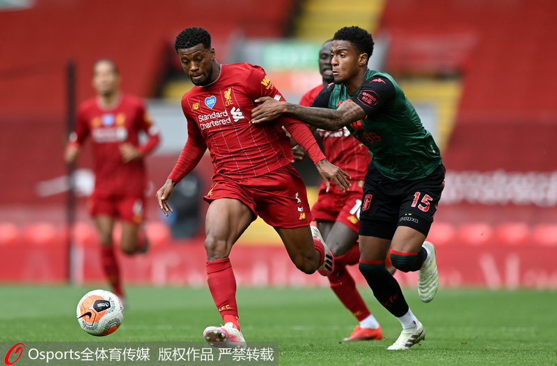 人民网北京7月6日电 北京时间7月5日23时30分,2019-2020赛季英超联赛第33轮展开角逐,新科冠军利物浦坐镇安菲尔德球场2-0轻取阿斯顿维拉,豪夺英超主场24连胜。第71分钟,凯塔助攻凯塔先拔头筹。替补出场的琼斯第89分钟接萨拉赫助攻,斩获了职业生涯第一个英超进球。