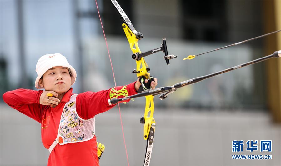 7月6日,中国一队选手张心妍在比赛中。当日,在位于南京的江苏省方山体育训练基地举行的射箭项目东京奥运会模拟赛女子反曲弓个人比赛中,中国一队选手张心妍获得第三名。本次比赛由国家体育总局射击射箭运动管理中心主办,除国家队外,本次比赛还选调了江苏、上海、浙江、山东、宁夏等省区市队参赛。 新华社记者 杨磊 摄