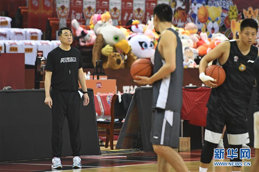 7月7日,在青岛市民健身中心体育馆,山西汾酒股份队主教练王非(左)观看球员训练。 当日,2019-2020赛季中国男子篮球职业联赛(CBA)复赛进入第二阶段比赛。根据安排,复赛第二阶段比赛将在青岛国信体育中心钻石体育馆(崂山赛区)和青岛市民健身中心体育馆(红岛赛区)进行。 目前,红岛赛区各项准备工作已基本就绪,各球队按计划分别进行踩场适应性训练。红岛赛区首场比赛将于7月8日打响。 新华社记者朱峥摄