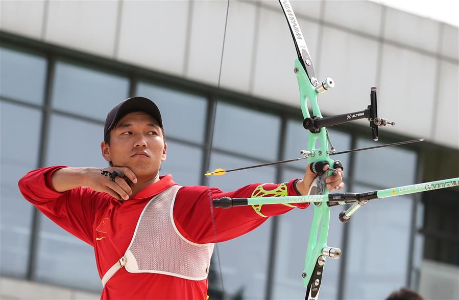 7月7日,国家一队选手戴小祥在比赛中。 当日,在位于南京的江苏省方山体育训练基地举行的射箭项目东京奥运会模拟赛男子反曲弓个人比赛中,国家一队选手戴小祥获得第一名。 新华社记者杨磊摄