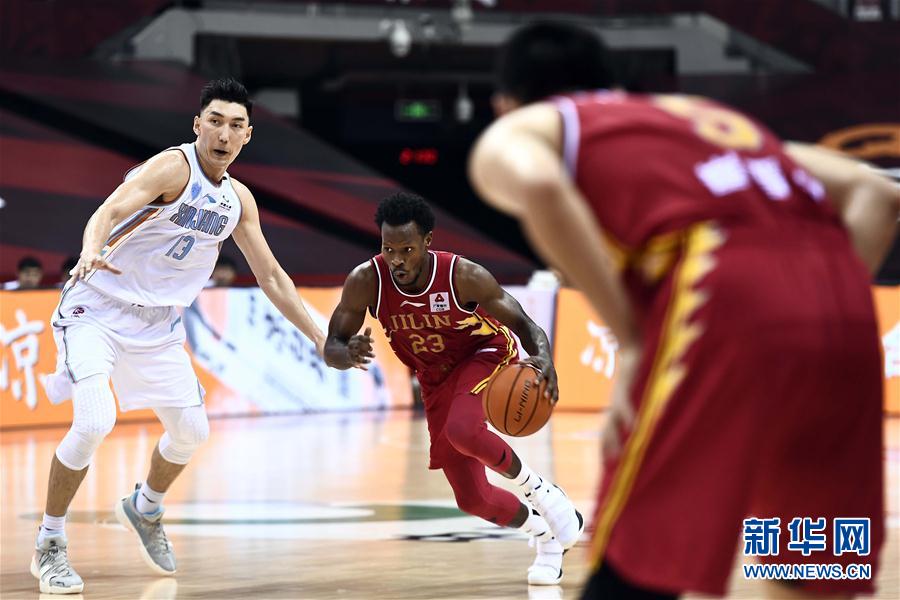 7月7日,吉林九台农商银行队球员希尔(中)在比赛中突破。 当日,在山东青岛举行的2019-2020赛季中国男子篮球职业联赛(CBA)复赛第二阶段(青岛崂山赛区)比赛中,吉林九台农商银行队以105比106不敌新疆伊力特队。 新华社记者郭绪雷摄