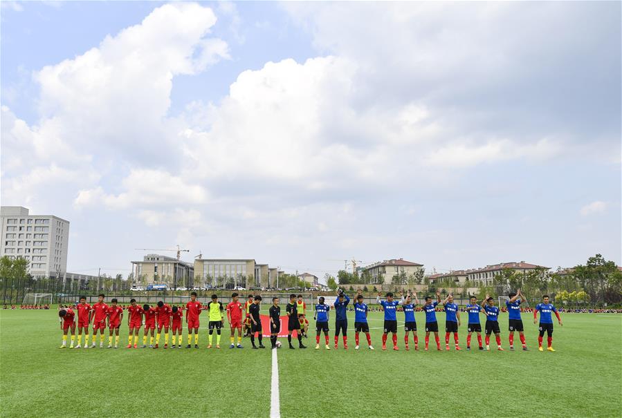 7月8日,亚泰足球俱乐部青训梯队教练员们(右)在比赛前向观看比赛的青训梯队小球员们挥手致意。 当日是2020年高考第二天。在位于吉林长春的长春亚泰净月基地,亚泰足球俱乐部各级青训梯队的35名教练员同样迎来了一场特殊的“考试”——与亚泰U15青训梯队的小球员们开展一场实战对抗。教练员们放下“教鞭”,穿上球鞋,与他们的弟子同场竞技,以“足球高考”的方式检验自身专业技能水平。 新华社记者许畅摄