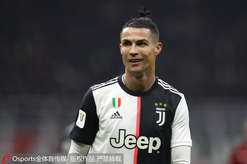 2009年,葡萄牙球员C罗以8000万英镑从英超“红魔”曼联转会至西甲皇家马德里,期间C罗多次获得各项赛事冠军,并荣获金靴奖等多个奖项。2018年,C罗以1亿欧元转投意甲尤文图斯。图为本赛季意大利杯半决赛首回合,AC米兰1-1尤文图斯。