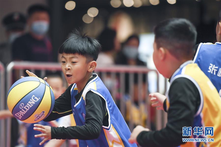 7月11日,奔跑羚羊队球员张子东(左)在比赛中突破。 当日,2019-2020赛季NYBO全国青少年篮球公开赛西宁赛区在青海省西宁市开赛。本次比赛共吸引13支队伍106名小队员参加。 新华社记者吴刚摄