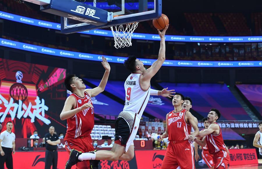 当日,在山东青岛举行的2019-2020赛季中国男子篮球职业联赛(CBA)复赛第二阶段(红岛赛区)比赛中,青岛国信双星队以81比74战胜深圳马可波罗队。 新华社记者 朱峥 摄