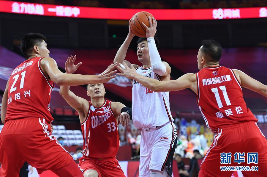 7月11日,深圳马可波罗队球员顾全(右二)在比赛中突破。 当日,在山东青岛举行的2019-2020赛季中国男子篮球职业联赛(CBA)复赛第二阶段(红岛赛区)比赛中,深圳马可波罗队对阵青岛国信双星队。 新华社记者 朱峥 摄