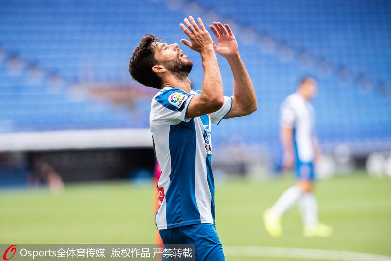西班牙人第41分钟错过机会,恩巴尔巴分球,卡列里禁区右侧距门11米处小角度低射击中远门柱。