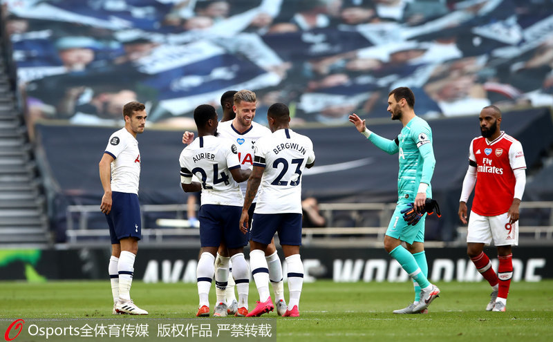 人民网北京7月13日电 北京时间昨晚23时30分,2019-2020赛季英超联赛第35轮的一场焦点战在托特纳姆热刺球场展开角逐,由热刺作战主场迎战阿森纳。上半场,拉卡泽特世界波打破僵局,孙兴慜搓射扳平比分,本-戴维斯远射击中门框。下半场,奥巴梅扬劲射击中横梁,孙兴慜助攻阿尔德韦雷尔德反超比分。最终,热刺主场2-1逆转战胜阿森纳。