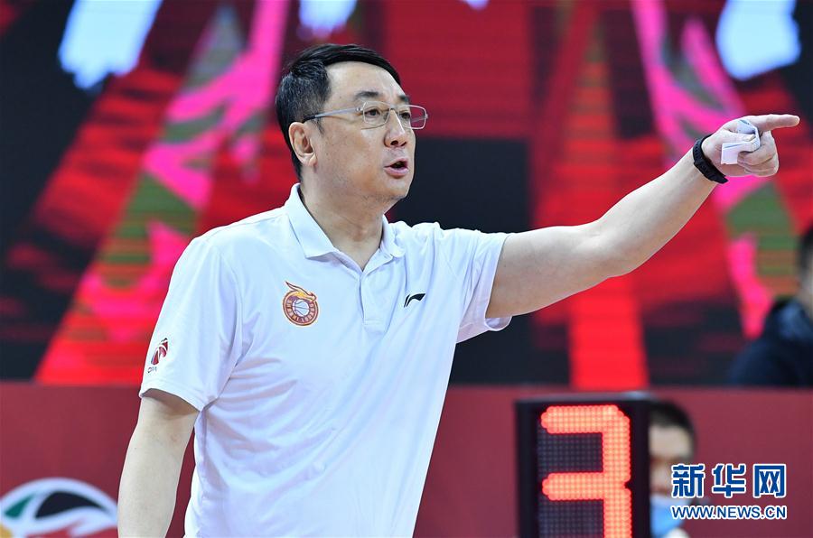 7月13日,山西汾酒股份队主教练王非在场边指挥。 当日,在山东青岛举行的2019-2020赛季中国男子篮球职业联赛(CBA)复赛第二阶段(红岛赛区)比赛中,北京首钢队以111比91战胜山西汾酒股份队。 新华社记者 朱峥 摄