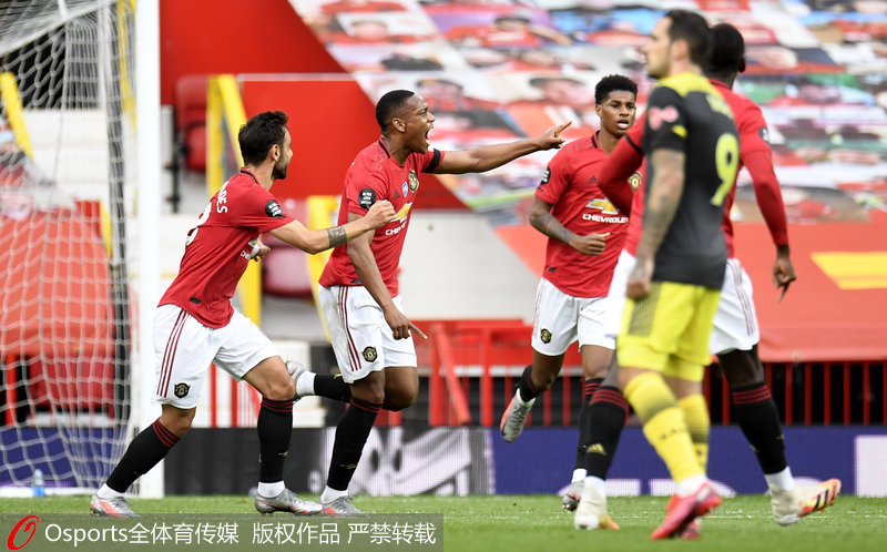 人民网北京7月14日电(杨磊) 北京时间7月14日凌晨,2019/20赛季英超第35轮最后一场比赛展开争夺,曼联主场2比2憾平南安普敦,阿姆斯特朗先拔头筹,马夏尔传射,拉什福德进球,奥巴费米压哨扳平。由于切尔西、莱斯特城本轮相继输球,曼联只要本场比赛取胜就可以进入积分榜前三名,但红魔未能抓住机会,目前与莱斯特城平分,排名积分榜第5。