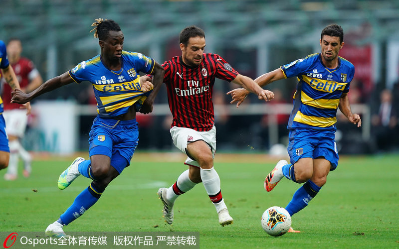第44分钟,帕尔马队格拉西右肋得球后回敲中路,库尔蒂奇迎球低射近角破门得分,帕尔马1-0领先AC米兰。