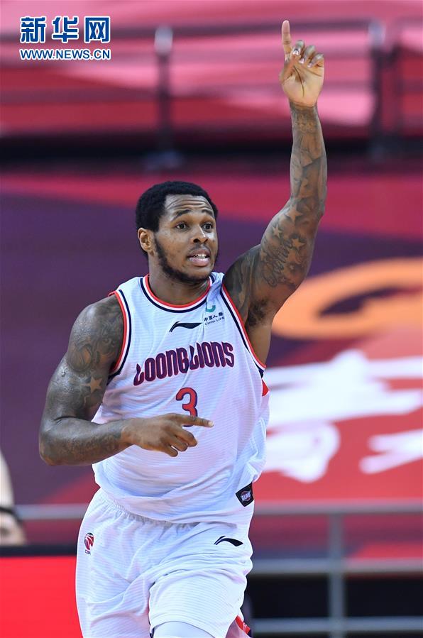 7月16日,时代中国广州队球员亨特在比赛中。 当日,在山东青岛举行的2019-2020赛季中国男子篮球职业联赛(CBA)复赛第二阶段(红岛赛区)比赛中,时代中国广州队以107比100战胜苏州肯帝亚队。 新华社记者 朱峥 摄