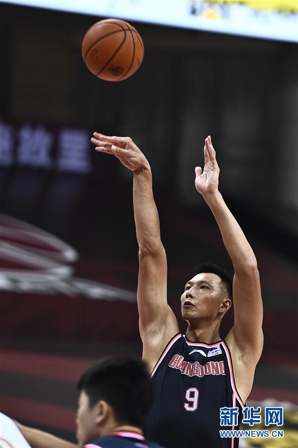7月16日,广东东莞银行队球员易建联在比赛中罚篮。 当日,在山东青岛举行的2019-2020赛季中国男子篮球职业联赛(CBA)复赛第二阶段(崂山赛区)比赛中,广东东莞银行队以104比97战胜浙江广厦控股队。 新华社记者 郭绪雷 摄