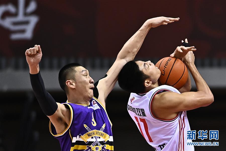 7月17日,北京控股队球员孙悦(左)在比赛中防守青岛国信双星队球员焦海龙。 当日,在山东青岛举行的2019-2020赛季中国男子篮球职业联赛(CBA)复赛第二阶段(崂山赛区)比赛中,青岛国信双星队以95比91战胜北京控股队。 新华社记者 郭绪雷 摄