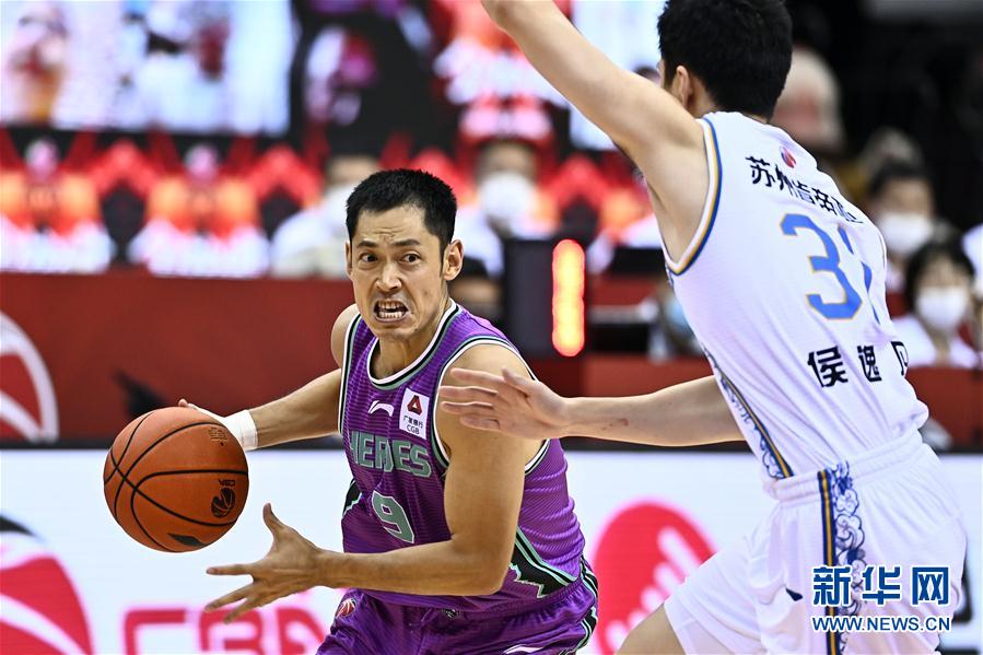 7月20日,山东西王队球员张庆鹏(左)在比赛中带球突破。 当日,在山东青岛举行的2019-2020赛季中国男子篮球职业联赛(CBA)复赛第二阶段(崂山赛区)比赛中,苏州肯帝亚队以101比92战胜山东西王队。 新华社记者郭绪雷摄