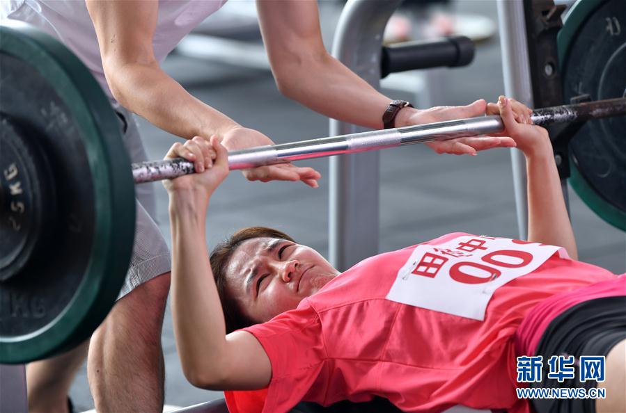 7月21日,田径中心运动员齐奥在参加卧推竞赛。 当日,天津市体育局优秀运动队体能大比武在团泊体育中心顺利进行,来自田径中心、举摔柔拳跆中心、排球中心等9个天津市体育局下属运动管理中心的约90位运动员,参加卧推、垂直纵跳、定时跳绳、3000米计时、30米计时的竞赛。据了解,此次体能大比武是为了集中检验疫情期间的封闭训练成果,更为有针对性地开展奥运会、全运会备战工作打下体能基础。 新华社记者 李然 摄