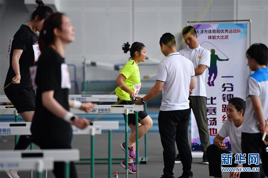 7月21日,运动员们在参加定时跳绳竞赛。 当日,天津市体育局优秀运动队体能大比武在团泊体育中心顺利进行,来自田径中心、举摔柔拳跆中心、排球中心等9个天津市体育局下属运动管理中心的约90位运动员,参加卧推、垂直纵跳、定时跳绳、3000米计时、30米计时的竞赛。据了解,此次体能大比武是为了集中检验疫情期间的封闭训练成果,更为有针对性地开展奥运会、全运会备战工作打下体能基础。 新华社记者 李然 摄