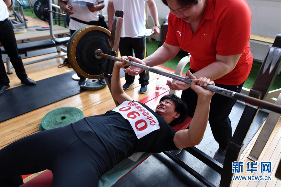 7月21日,举摔柔拳跆中心运动员申海然在参加卧推竞赛。 当日,天津市体育局优秀运动队体能大比武在团泊体育中心顺利进行,来自田径中心、举摔柔拳跆中心、排球中心等9个天津市体育局下属运动管理中心的约90位运动员,参加卧推、垂直纵跳、定时跳绳、3000米计时、30米计时的竞赛。据了解,此次体能大比武是为了集中检验疫情期间的封闭训练成果,更为有针对性地开展奥运会、全运会备战工作打下体能基础。 新华社记者 李然 摄