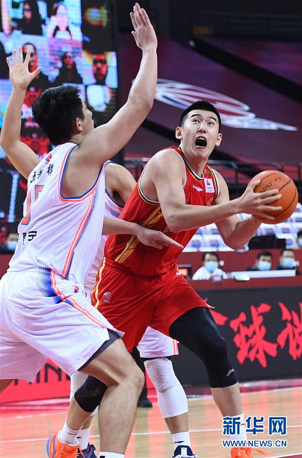 7月22日,八一南昌队球员付豪(右)在比赛中突破。 当日,在山东青岛举行的2019-2020赛季中国男子篮球职业联赛(CBA)复赛第二阶段(红岛赛区)比赛中,四川五粮金樽队以101比84战胜八一南昌队。 新华社记者 朱峥 摄