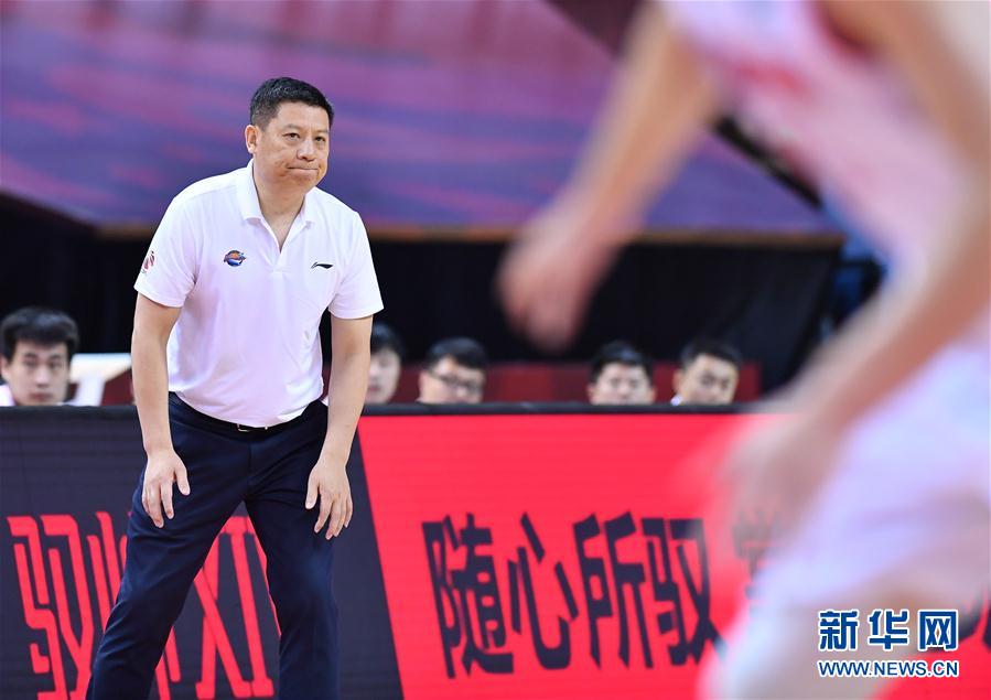 7月22日,四川五粮金樽队主教练周金利在场边观战。 当日,在山东青岛举行的2019-2020赛季中国男子篮球职业联赛(CBA)复赛第二阶段(红岛赛区)比赛中,四川五粮金樽队以101比84战胜八一南昌队。 新华社记者 朱峥 摄