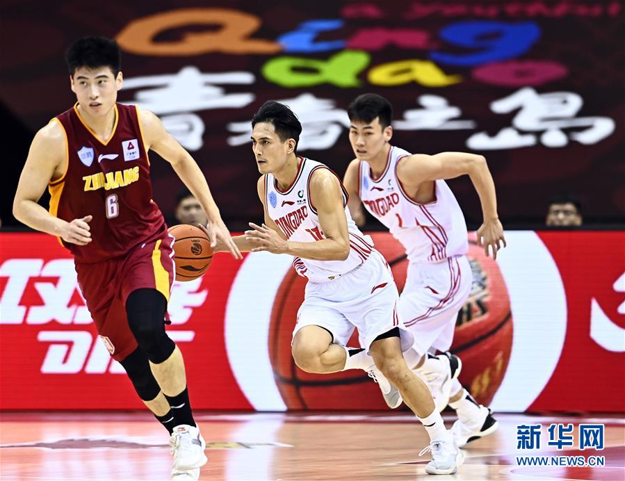 7月22日,青岛国信双星队球员林韦翰(中)在比赛中带球进攻。 当日,在山东青岛举行的2019-2020赛季中国男子篮球职业联赛(CBA)复赛第二阶段(崂山赛区)比赛中,青岛国信双星队以85比102不敌浙江稠州银行队。 新华社记者郭绪雷摄