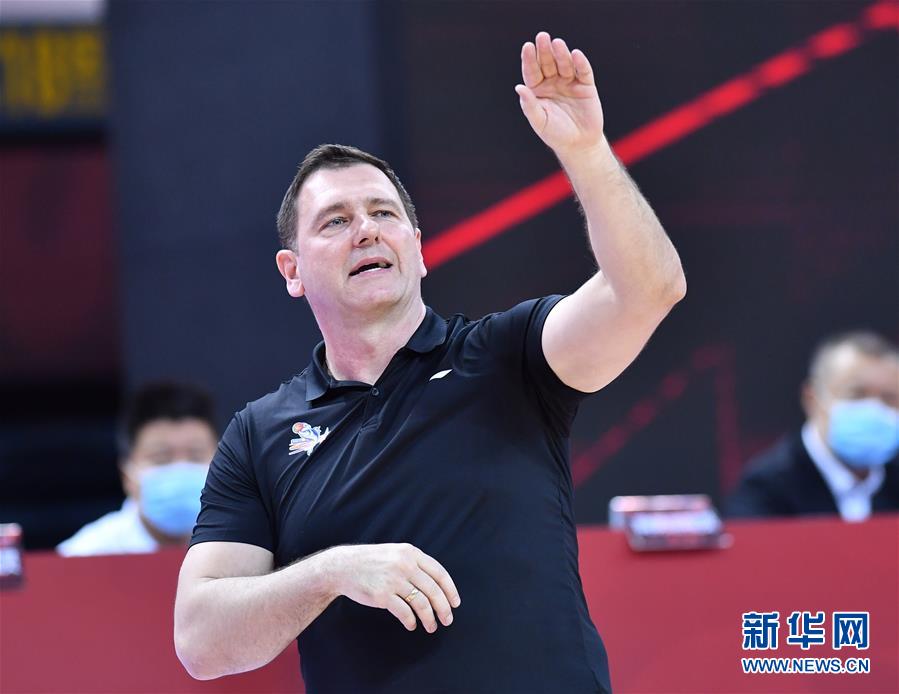 7月22日,福建豹发力队主教练凯撒在场边指导。 当日,在山东青岛举行的2019-2020赛季中国男子篮球职业联赛(CBA)复赛第二阶段(红岛赛区)比赛中,北京首钢队对阵福建豹发力队。 新华社记者朱峥摄