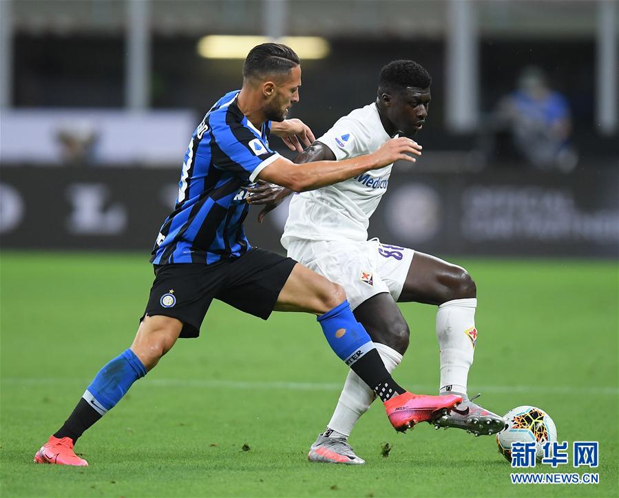 7月22日,国际米兰队球员丹布罗西奥(左)与佛罗伦萨队球员邓肯在比赛中拼抢。 当日,在2019-2020赛季意大利足球甲级联赛第35轮比赛中,国际米兰队主场以0比0战平佛罗伦萨队。 新华社发(阿尔贝托·林格利亚 摄)