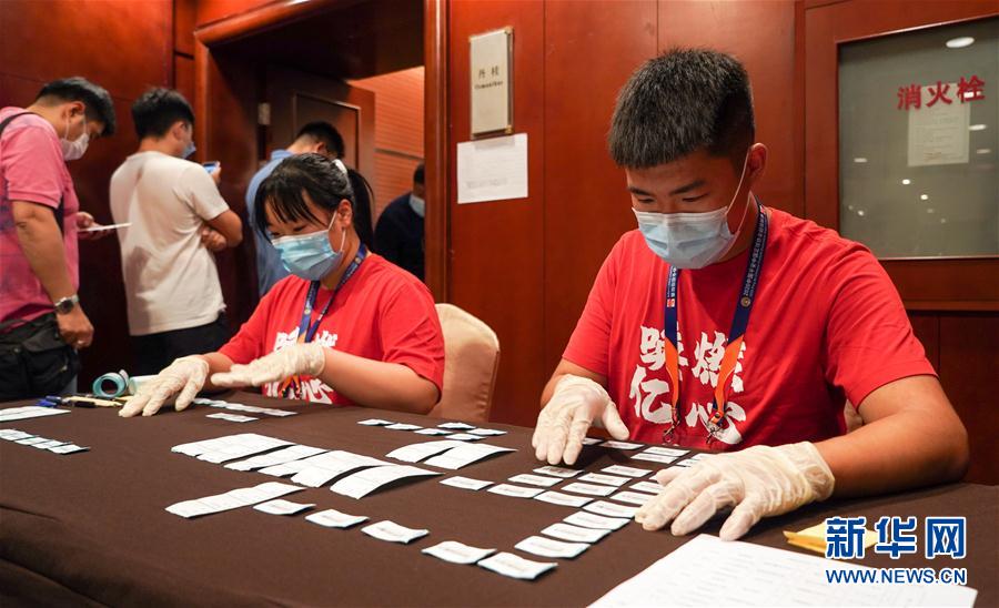 7月23日,工作人员在整理媒体记者核酸检测所需标签。 当日,即将在江苏省苏州市采访2020中国足球超级联赛的媒体记者接受核酸检测。受新冠疫情影响,原定于2月22日开始新赛季的中超联赛将于7月25日正式开赛。 新华社记者李博摄