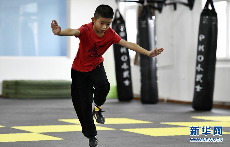 7月23日,一名小朋友在pko跨界空间武术教室内参加暑期武术培训班。 pko跨界空间位于天津市南开区长江道,是一家由破旧厂房改造而成的体育运动中心,拥有笼式足球场、篮球训练馆、乒乓球馆、武术教室等。除了为周边居民提供运动场所外,pko跨界空间还在暑假期间为孩子们举办了多种运动的体育培训班。 新华社记者李然摄