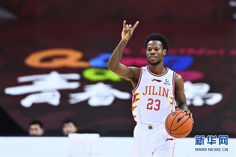 7月23日,吉林九台农商银行队球员希尔在比赛中。 当日,在山东青岛举行的2019-2020赛季中国男子篮球职业联赛(CBA)复赛第二阶段(崂山赛区)比赛中,吉林九台农商银行队迎战浙江广厦控股队。 新华社记者郭绪雷摄
