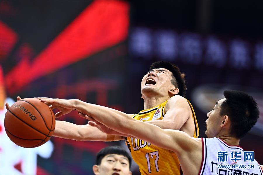7月23日,浙江广厦控股队球员孙铭徽(上)在比赛中进攻受阻。 当日,在山东青岛举行的2019-2020赛季中国男子篮球职业联赛(CBA)复赛第二阶段(崂山赛区)比赛中,浙江广厦控股队以119比96战胜吉林九台农商银行队。 新华社记者郭绪雷摄