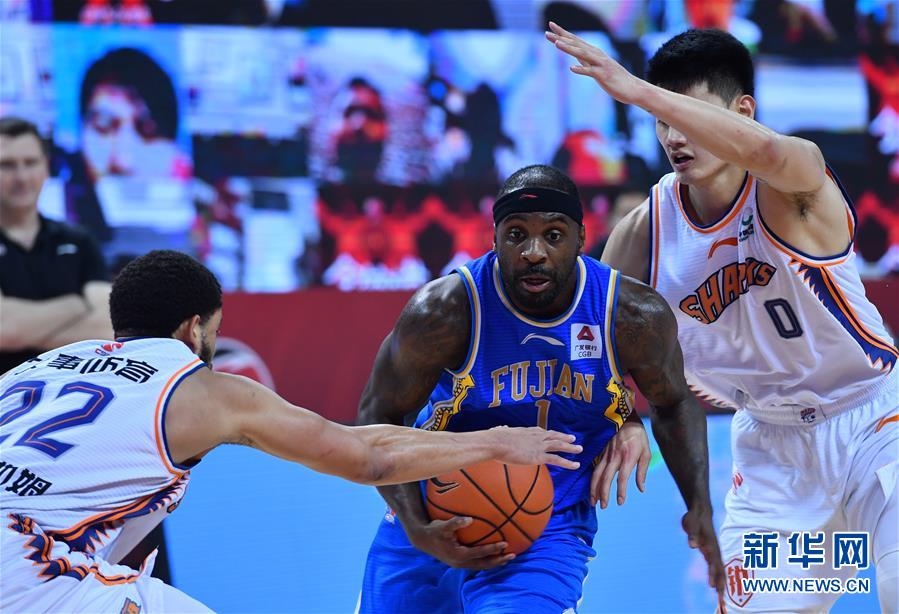 7月24日,福建豹发力队球员劳森(中)在比赛中进攻。 当日,在山东青岛举行的2019-2020赛季中国男子篮球职业联赛(CBA)复赛第二阶段(红岛赛区)比赛中,福建豹发力队以127比120战胜上海久事队。 新华社记者朱峥摄