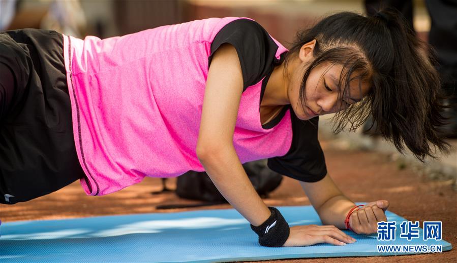 图为7月23日,郑国花在内蒙古体育局武川训练基地进行热身训练。 新华社记者连振摄