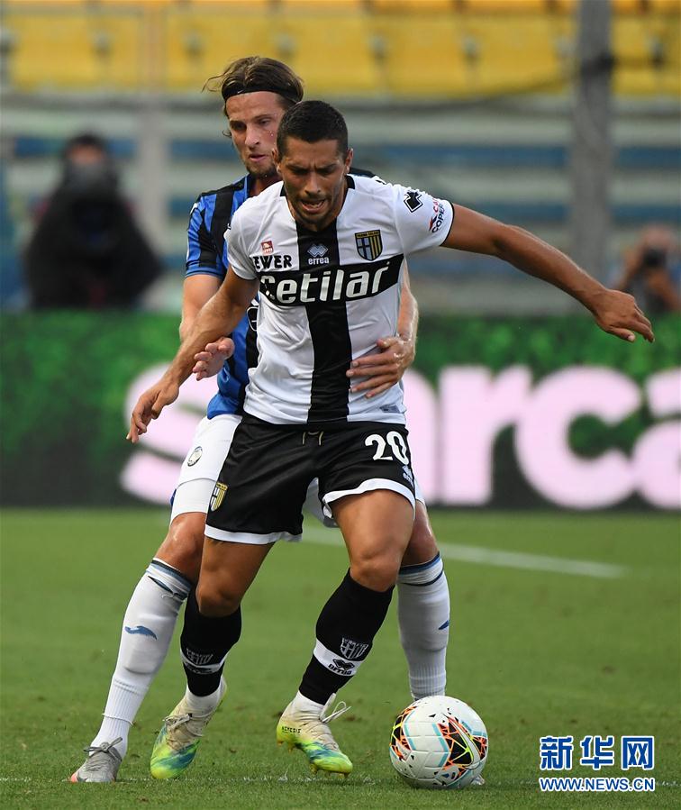 7月28日,亚特兰大队球员哈特鲍尔(后)和帕尔马队球员卡普拉里在比赛中拼抢。 当日,在2019-2020赛季意大利足球甲级联赛第37轮比赛中,亚特兰大队客场以2比1战胜帕尔马队。 新华社发